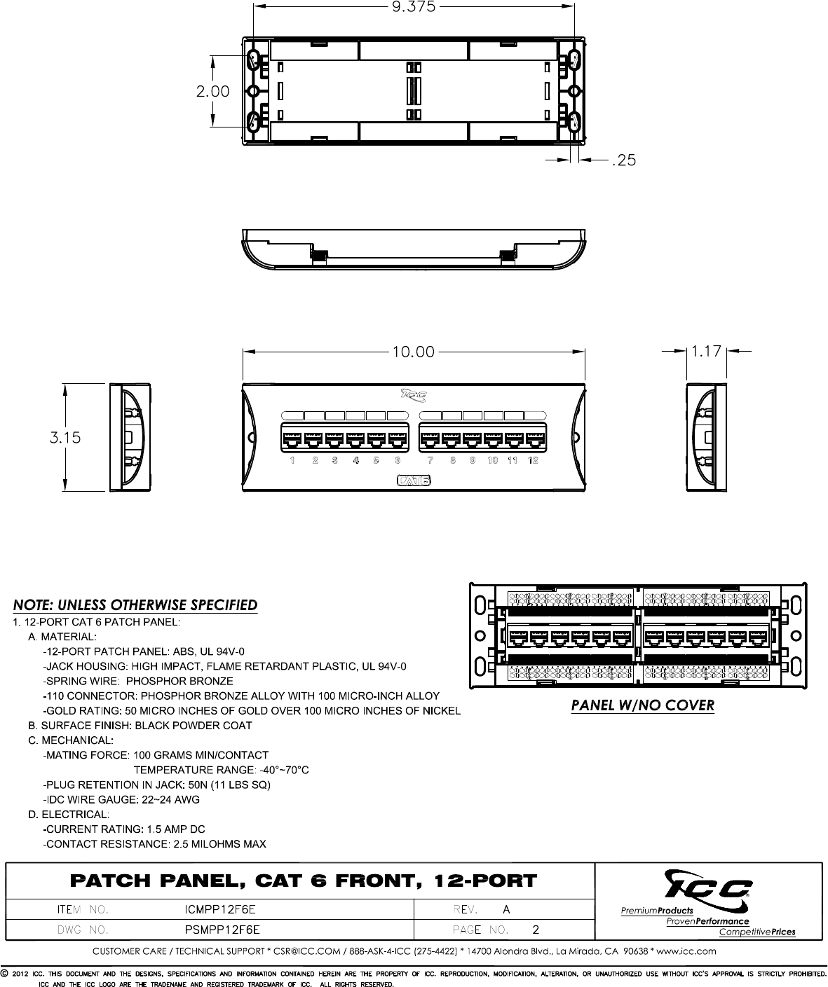 Patch panely ICC ICMPP012U6 Datový list