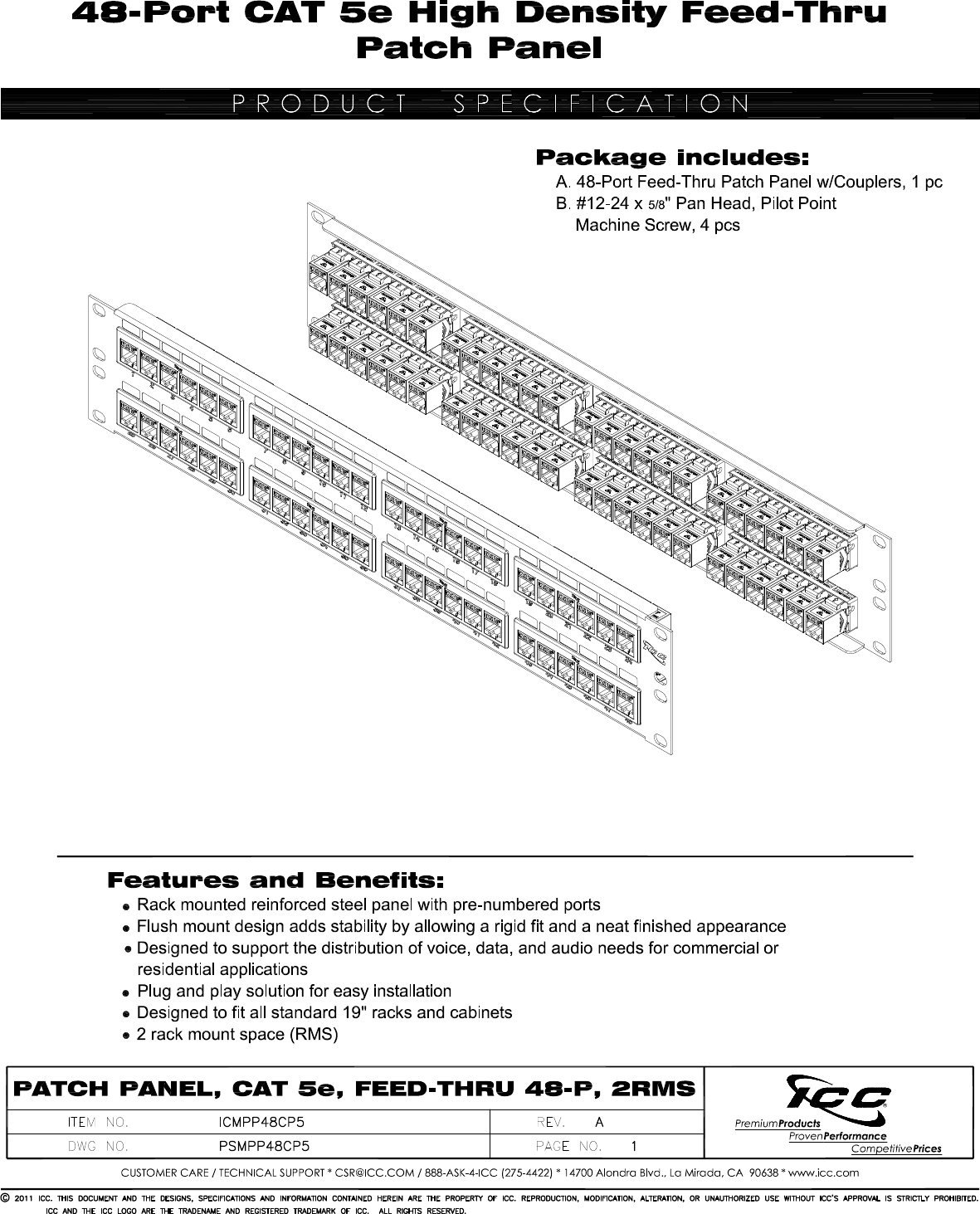 Procházejte online nebo si stáhněte Datový list pro Patch panely ICC ICMPP48CP5. ICC ICMPP48CP5 patch panel Uživatelská příručka