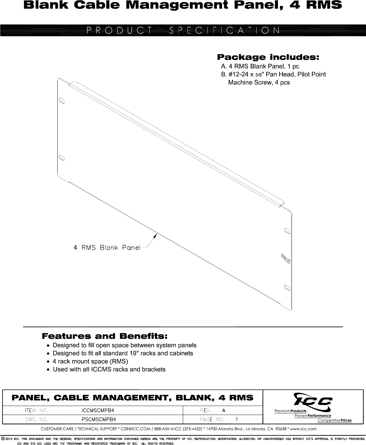 Procházejte online nebo si stáhněte Datový list pro Doplňky pro regály ICC ICCMSCMPB4. ICC ICCMSCMPB4 rack accessory Uživatelská příručka