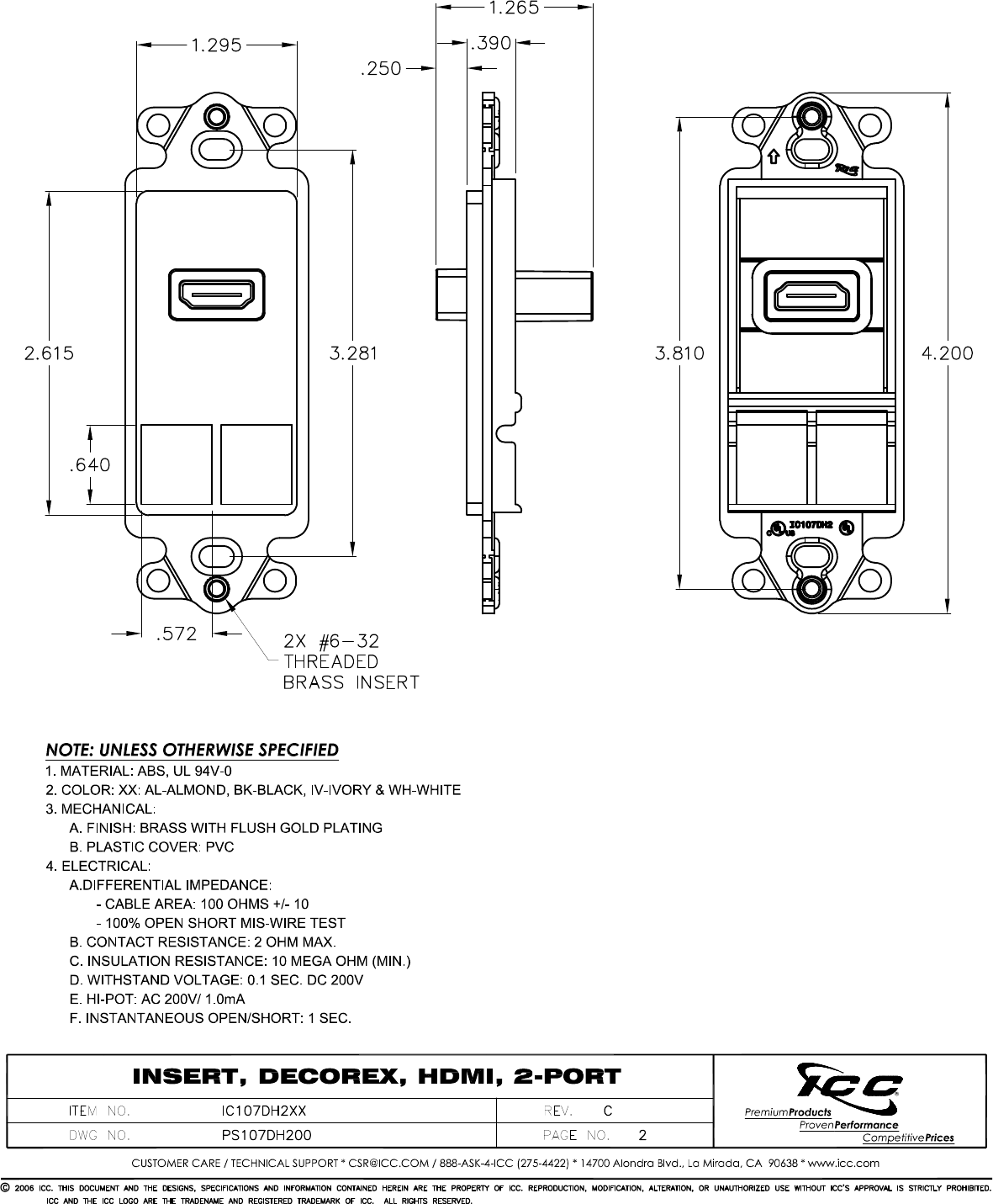 ICC IC107DH2BK Datový list Strana 2